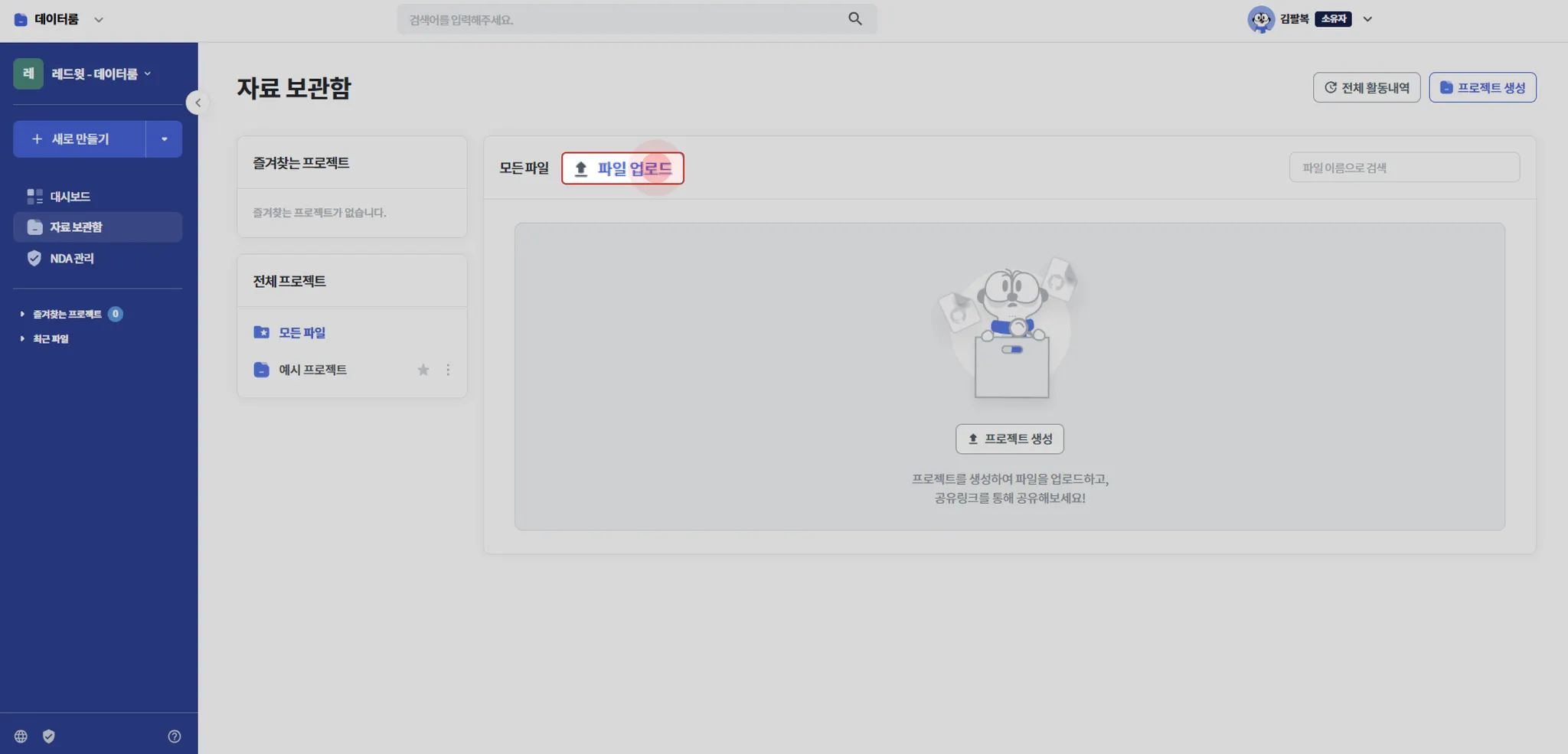 파일 추가는 자료 보관함 화면에서