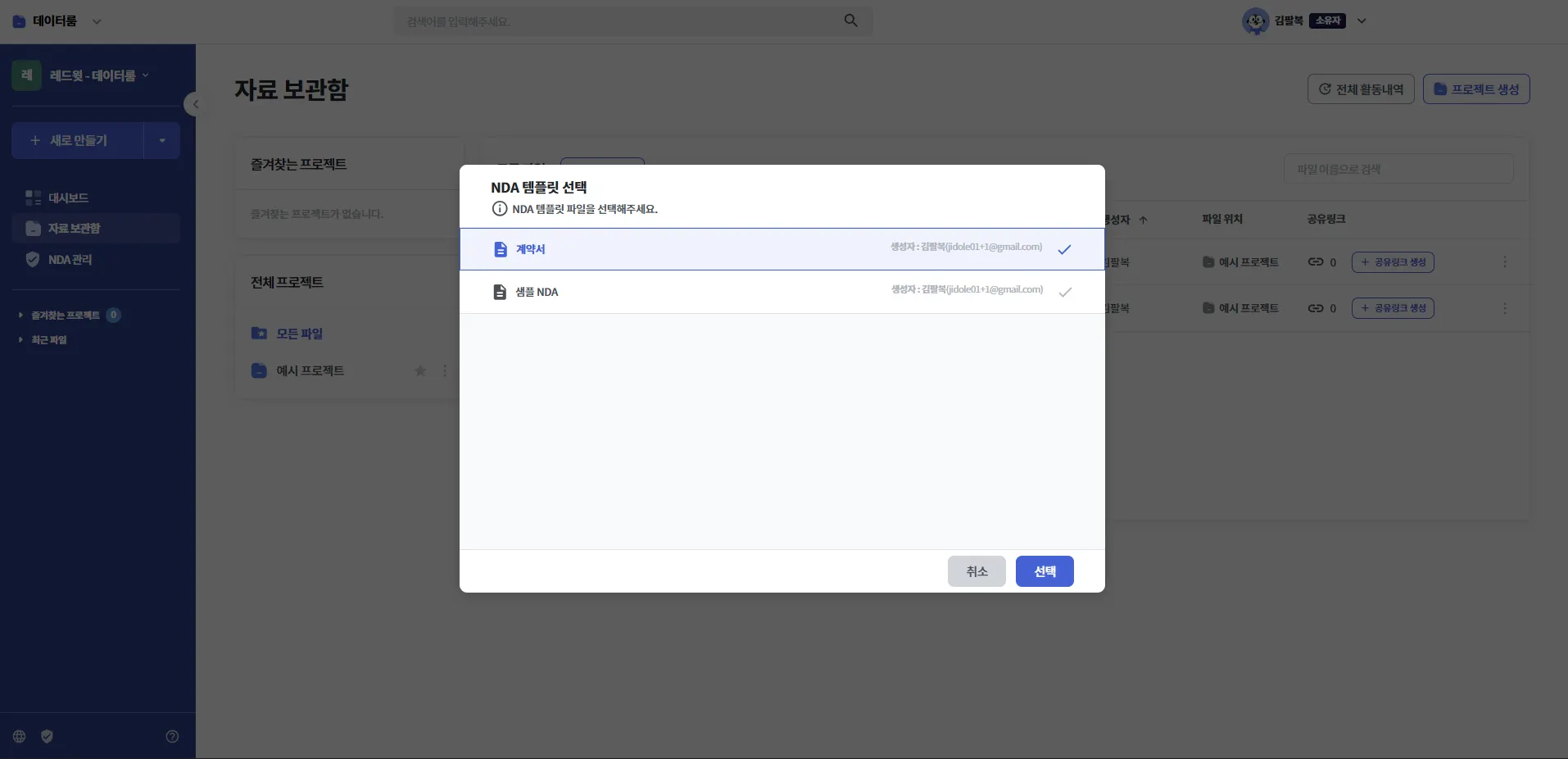 NDA 템플릿은 NDA 관리 메뉴에서 생성 가능합니다.