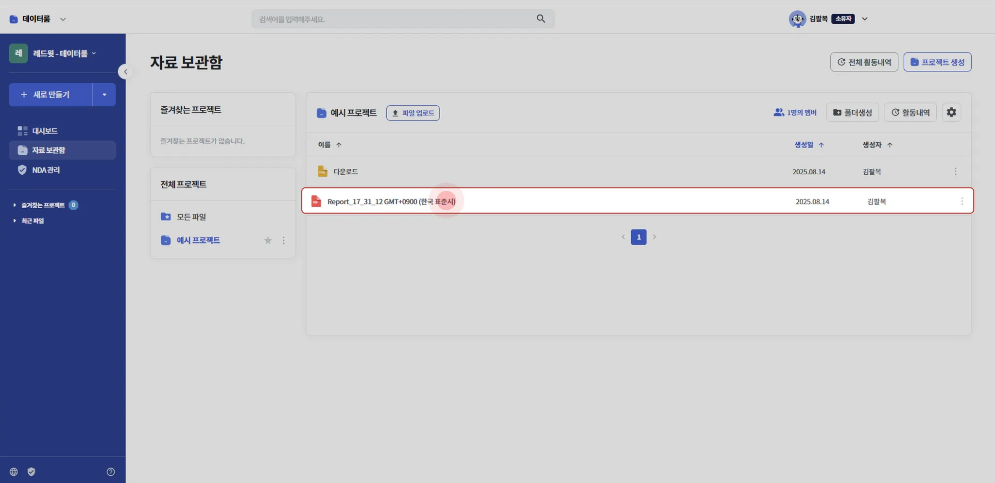 공유 링크를 생성할 파일을 클릭하여, [ 파일 상세 ] 페이지로 진입 할 수 있습니다.