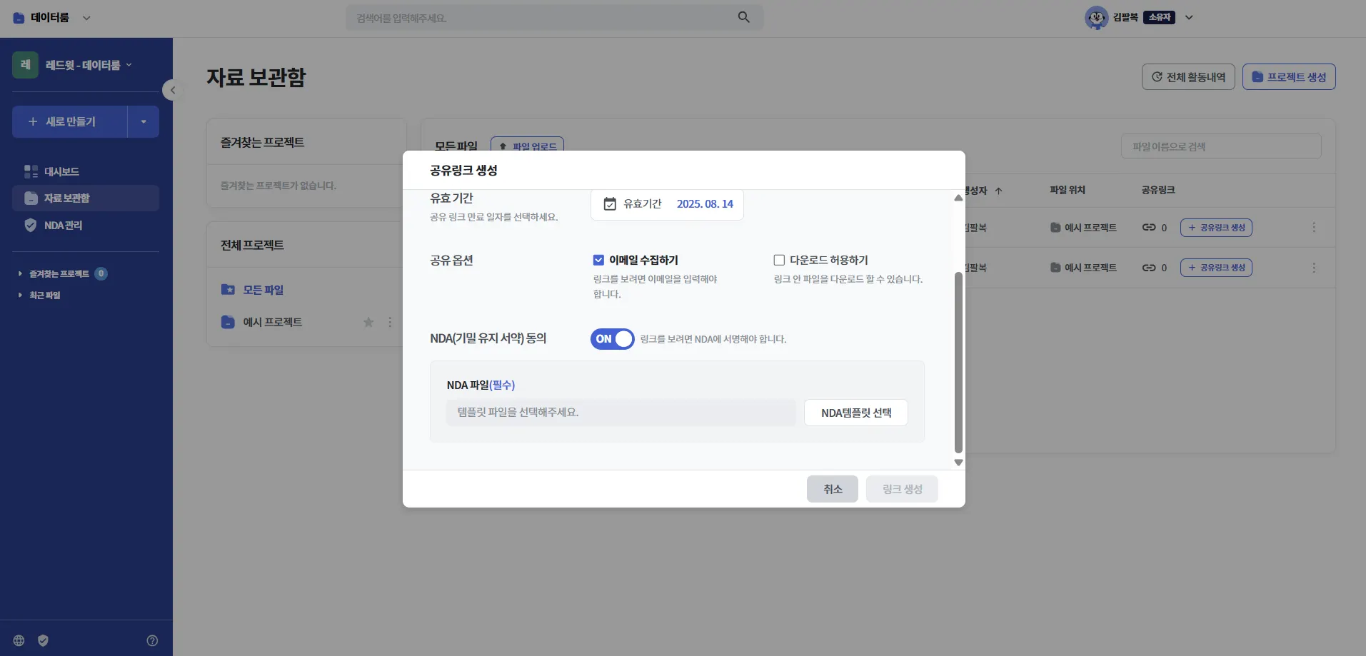 2-1. 공유 링크 NDA 동의 옵션 활성화 시