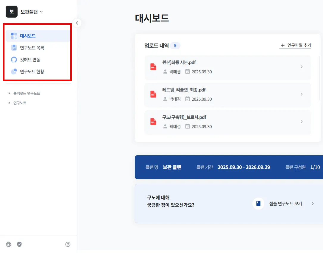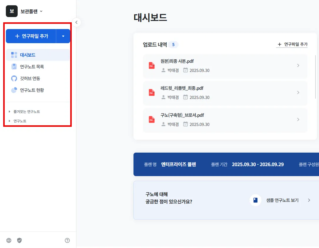 과제가 종료되어도 연구 자산을 안전하게 보관하고 추후 과제 진행 시 유료 플랜으로