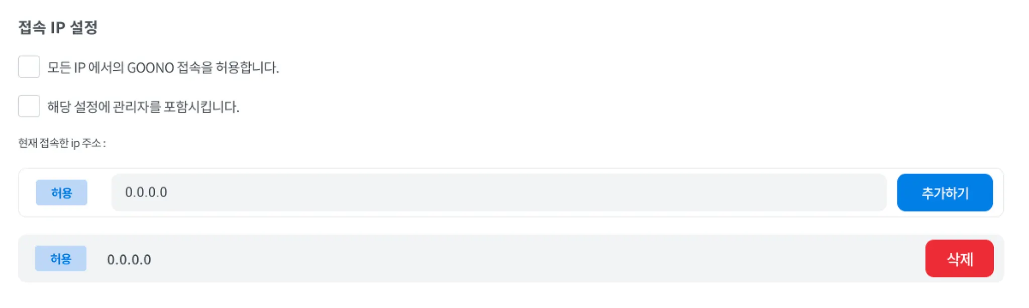 - 접속 IP 설정 기능을 통한 허용 IP 등록 기능 추가