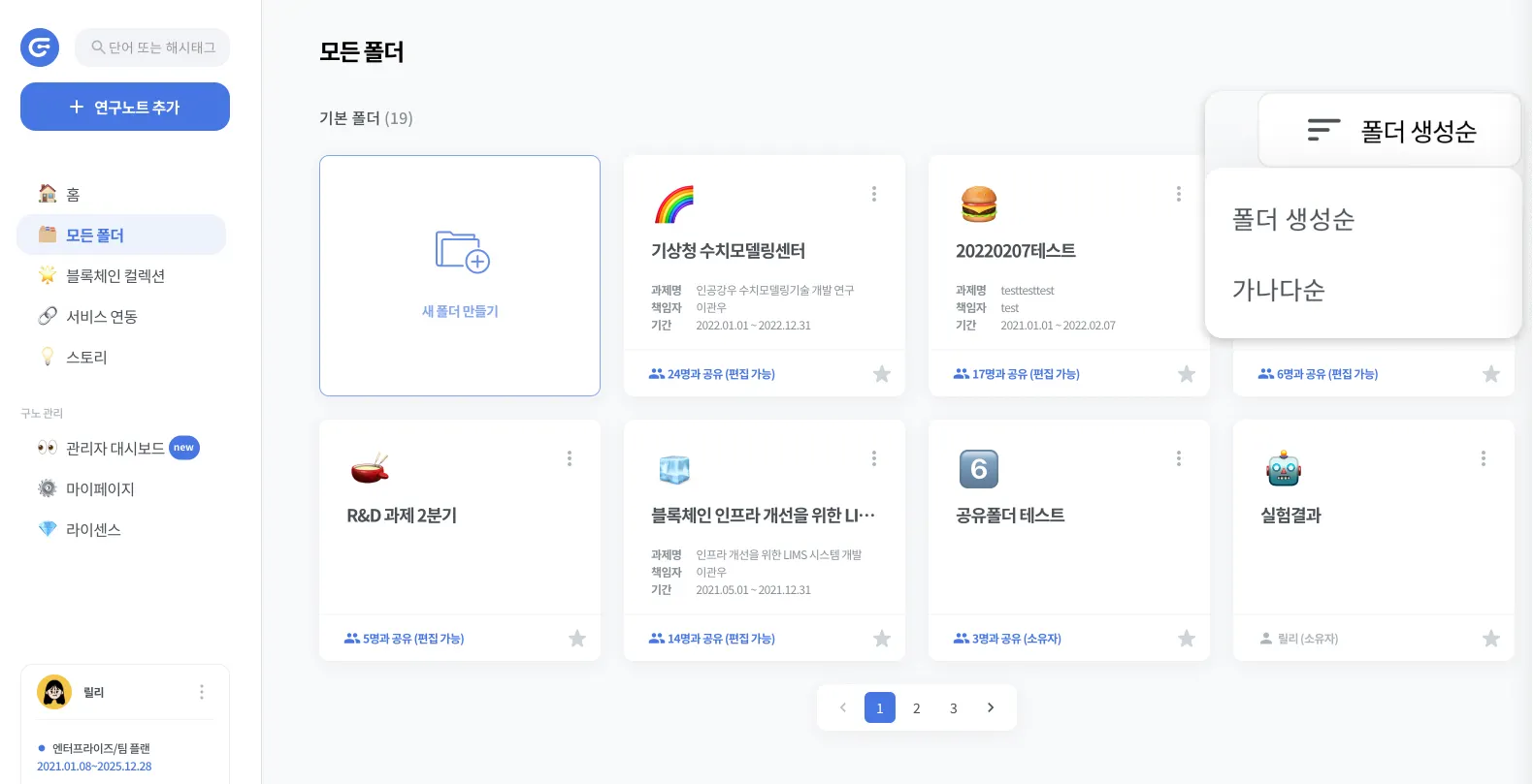 모든 폴더 내 폴더 정렬 기능이 추가되었습니다! 이제 폴더 생성순, 가나다순으로 폴더를 정렬할 수 있어, 찾고자하는 폴더를 쉽게 찾을 수 있습니다.