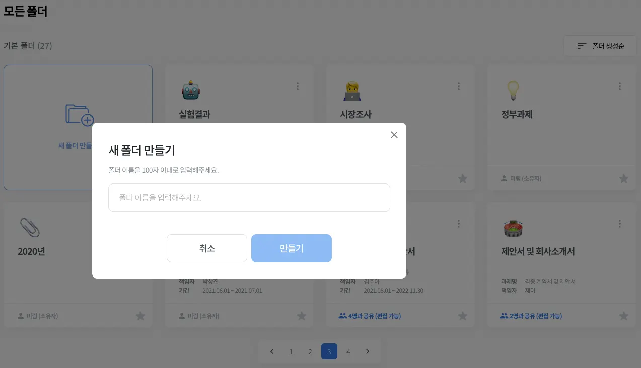 폴더명을 최대 100자까지 입력할 수 있습니다.