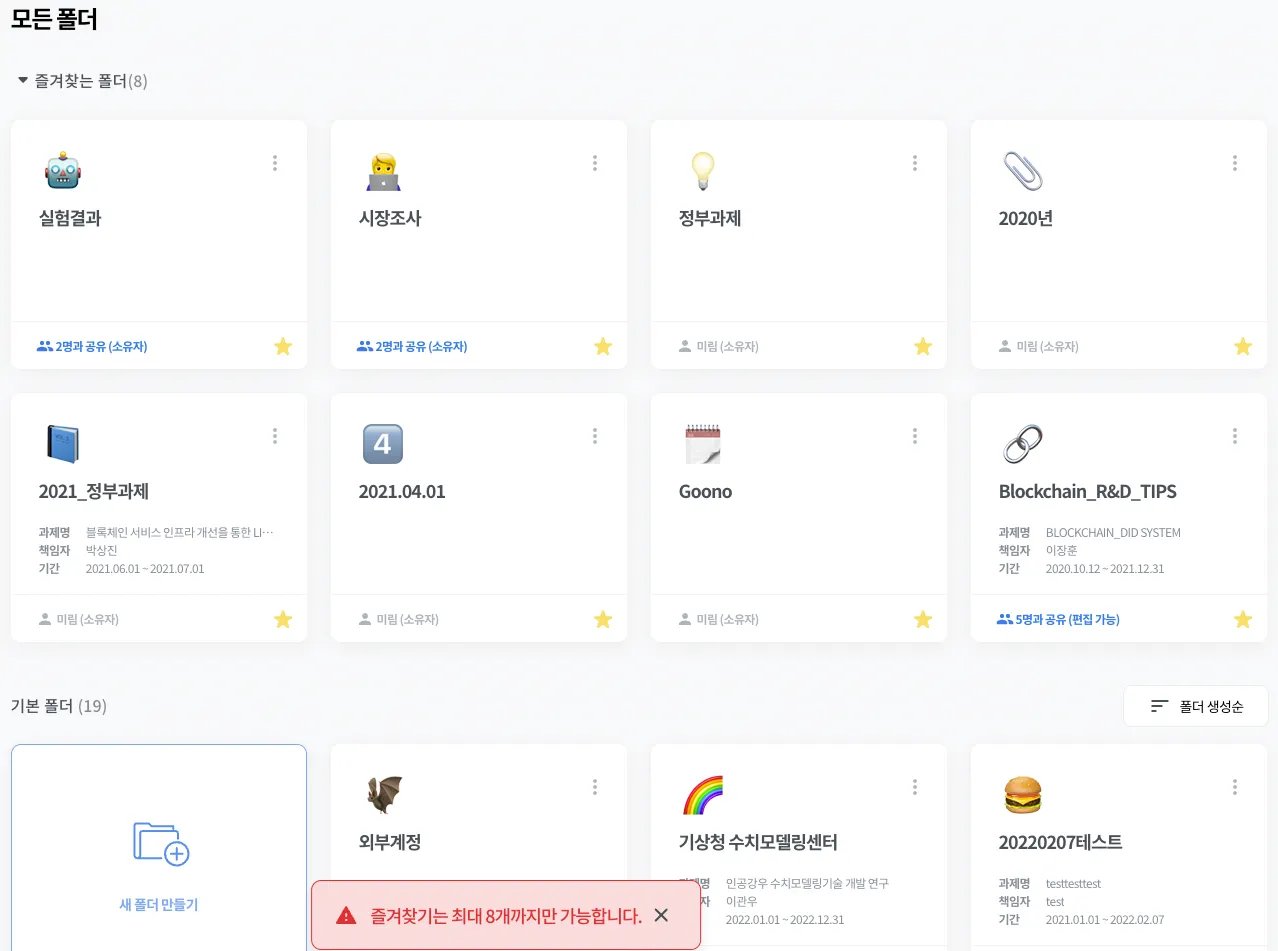 ️ 즐겨찾는 폴더를 최대 8개까지 설정할 수 있습니다.